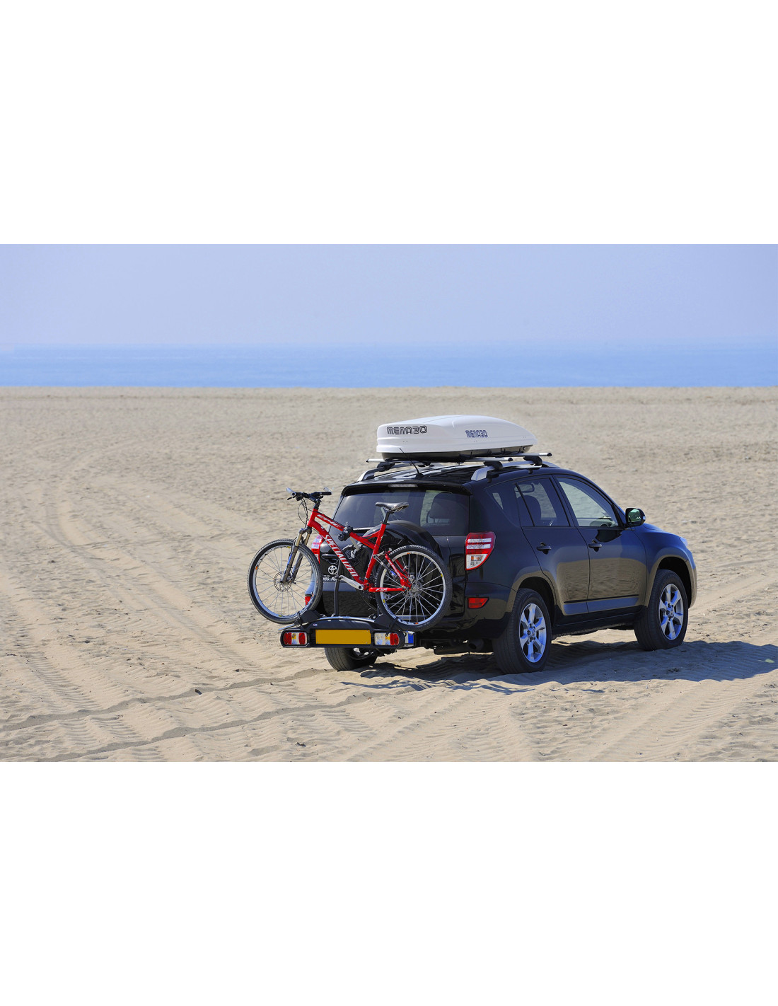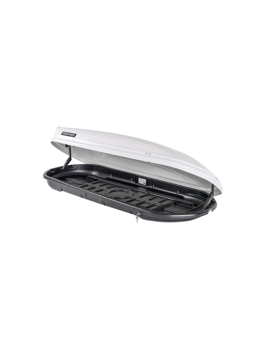Glänzend weißer Dachkoffer mit schlankem Profil und 460lt Kapazität
