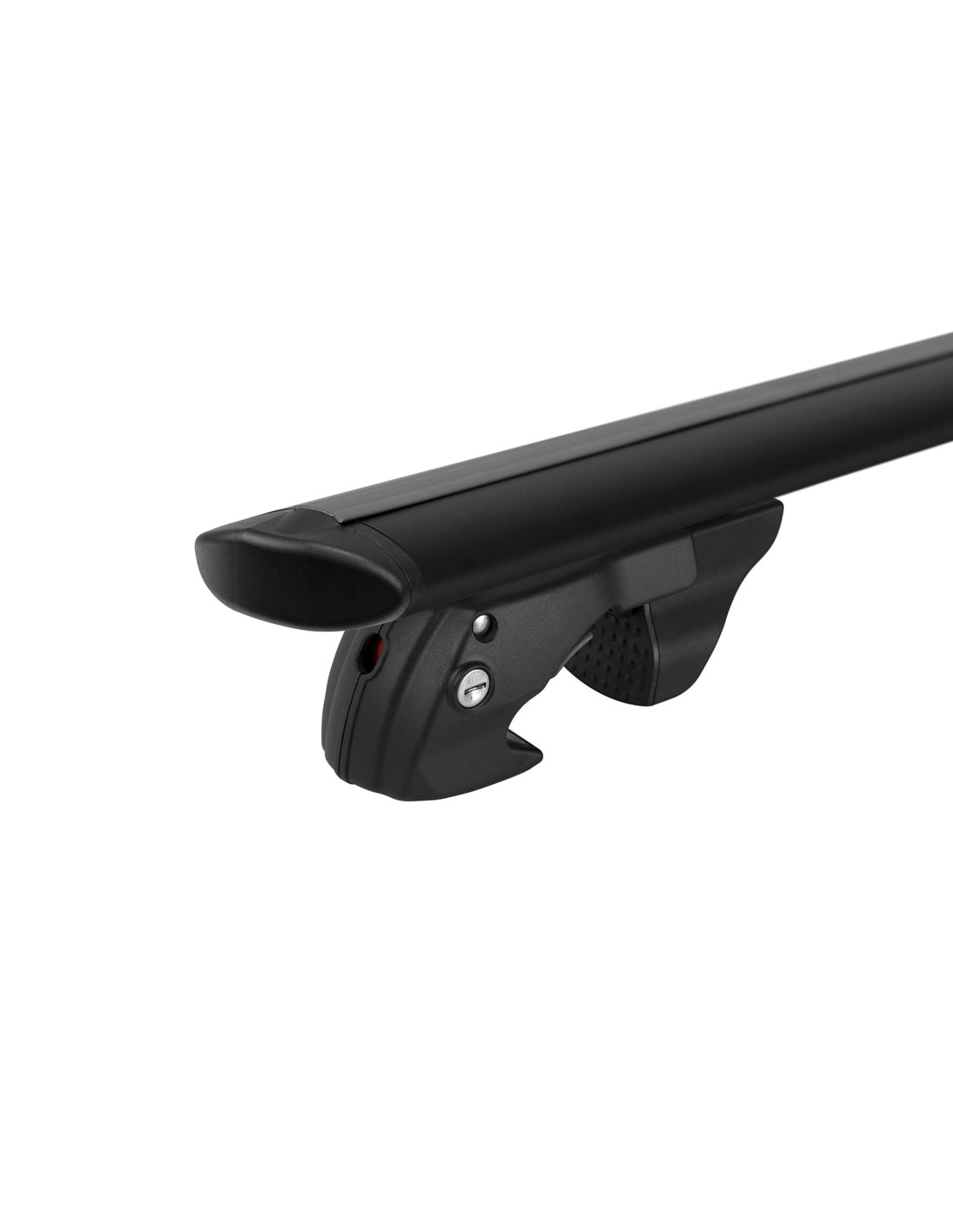 High quality aluminium roof bars with wing-profile, for improved aerodynamics and reduced wind noise. Provided with groove for quick mounting of accessories by means of “T” screws. Equipped with antitheft lock.