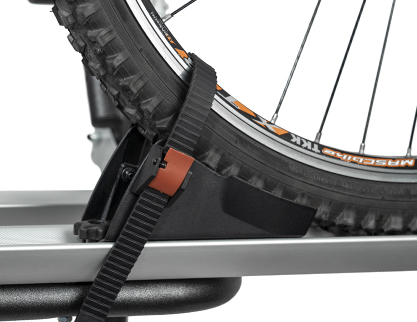 Portabicicletas trasero exclusivo para VW T6 con pomos antirrobo para bicicletas y portabicicletas y sistema de fijación mediante bandas de acero