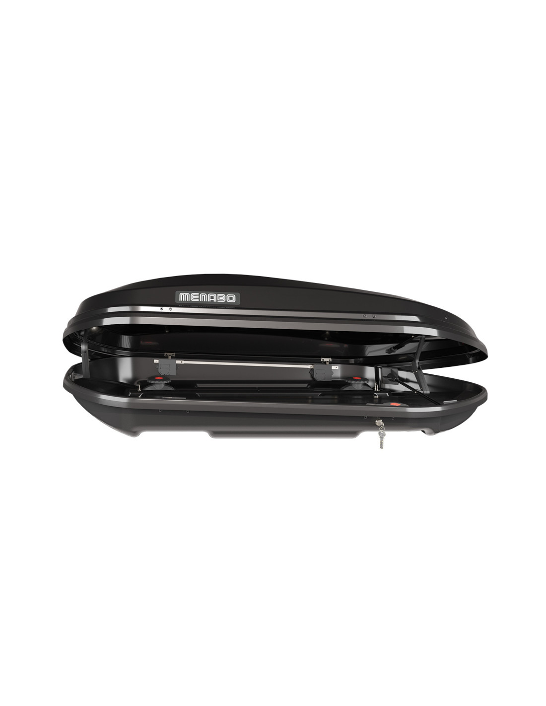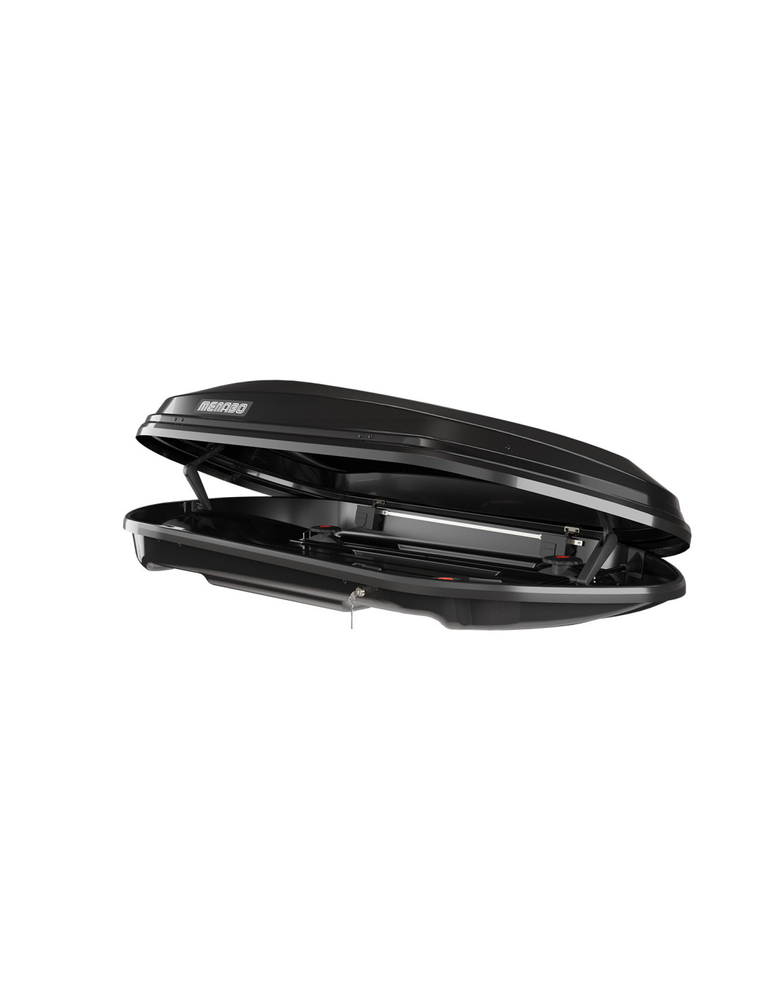 Coffre de toit noir brillant, élégant et aérodynamique avec 450lt de capacité et double ouverture