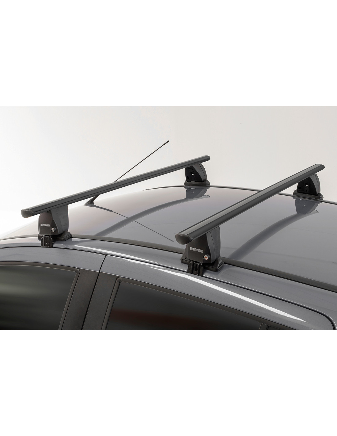 Coppia di profili in alluminio provvisti di scanalatura per il montaggio rapido degli accessori con vite a "T". Completa di piedi d'aggancio regolabili con chiusura antifurto opzionale. Sistema componibile di barre portatutto per veicoli senza rails. Grazie ai molteplici kit di fissaggio e alle varianti di profili, si ha una soluzione per ogni veicolo.
